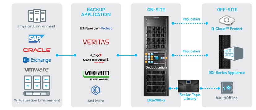 Quantum의 Dxi VTL은 특허 받은 가변길이 방식의 중복제거 기술과 최강의 파일 시스템인 StorNext를 통해 초고밀도 중복제거 디스크 백업 솔루션 입니다.