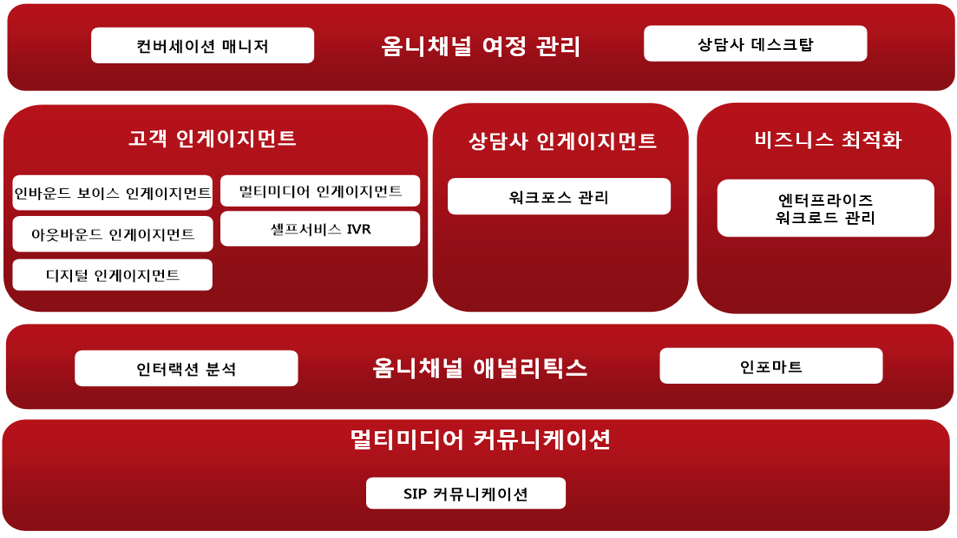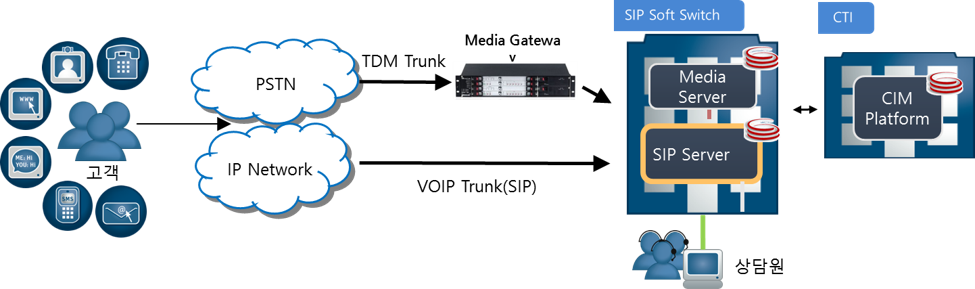 개방형 글로벌 표준 SIP 프로토콜 기반의 멀티미디어 커뮤니케이션 솔루션으로, ACD플랫폼으로 모든 기능을 수용하면 다양한 코덱 지원 및 안전한 IP 컨택센터를 구현할 수 있습니다.